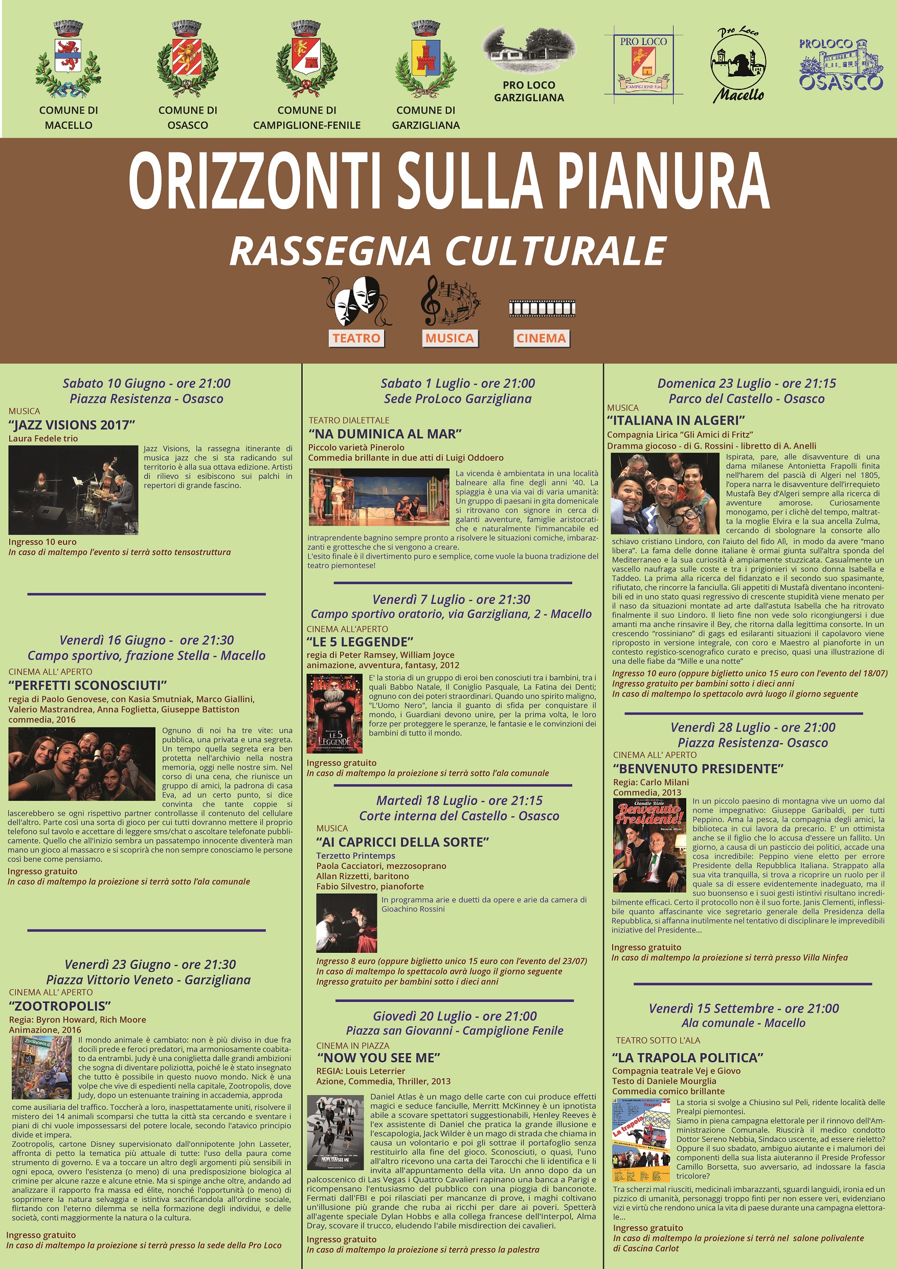 L'iniziativa "Orizzonti sulla pianura" continua venerdì 7 luglio, ore 21:30, con il film di animazione e fantasy "LE 5 LEGGENDE". La proiezione si terrà nel campo sportivo dell'oratorio o, in caso di maltempo, sotto l'ala comunale. Ingresso gratuito. Il dettaglio di tutti gli eventi nella locandina allegata.