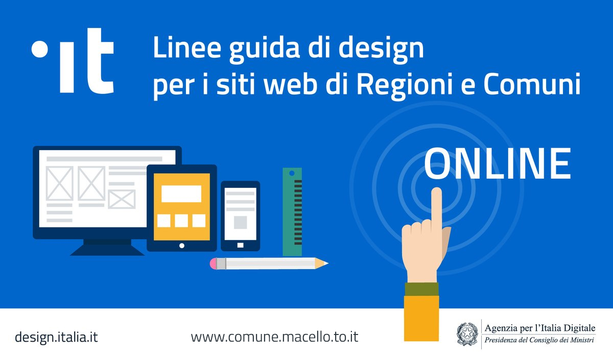 Da oggi è on line il nuovo sito web del Comune di Macello realizzato secondo le Linee Guida di design per i siti web della PA.