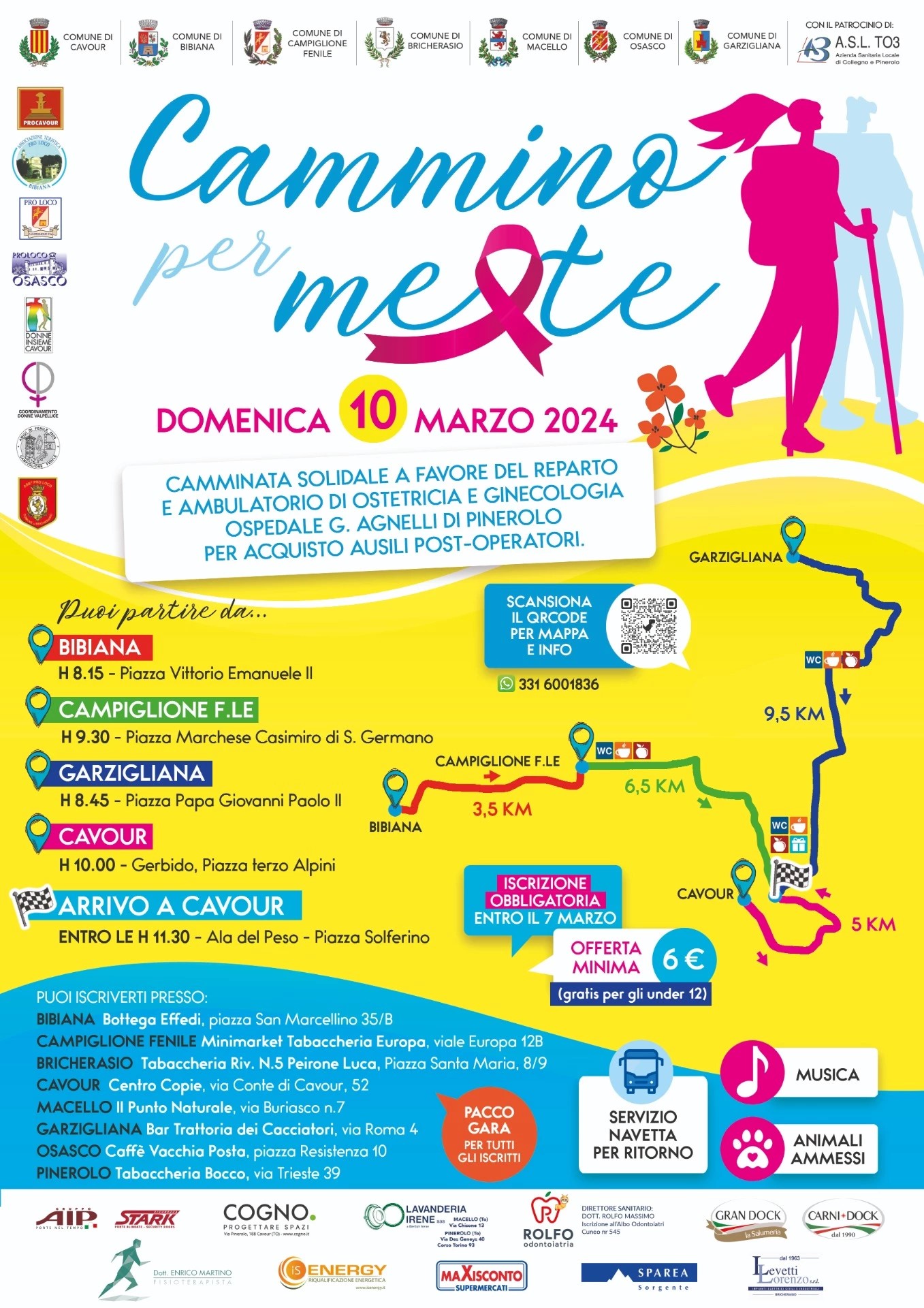 Domenica 10 marzo 2024, al mattino, camminata solidale a favore del reparto e ambulatorio di ostetricia e ginecologia dell'Ospedale Agnelli di Pinerolo per l'acquisto di ausili post-operatori.