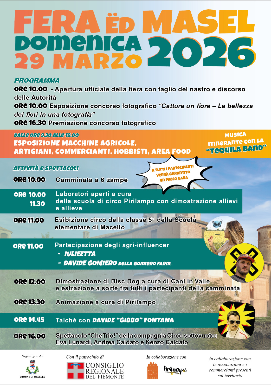 Domenica 29 marzo 2026 si svolgerà la "Fera ëd Masel", con il patrocinio del Consiglio Regionale del Piemonte.